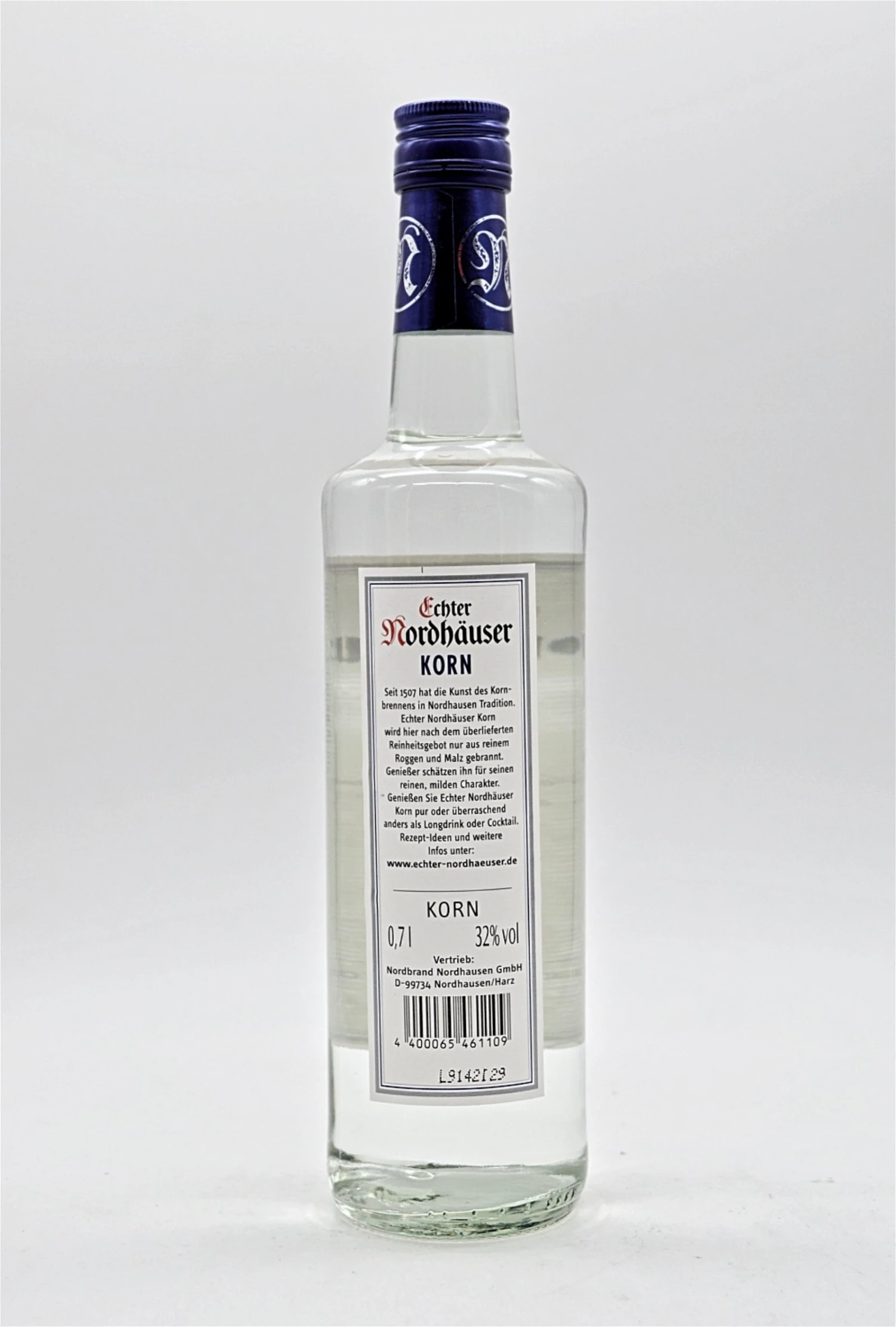 Wo andere Kornspirituosen aus Weizen gebrannt werden, da setzt Echter Nordhäuser ganz auf den kräftig würzigen Geschmack des Roggens. Seit 1507 hat die Kunst des Kornbrennens in Nordhausen Tradition und Echter Nordhäuser Doppelkorn wird hier nach dem überlieferten Reinheitsgebot nur aus reinem Roggen und Malz gebrannt.