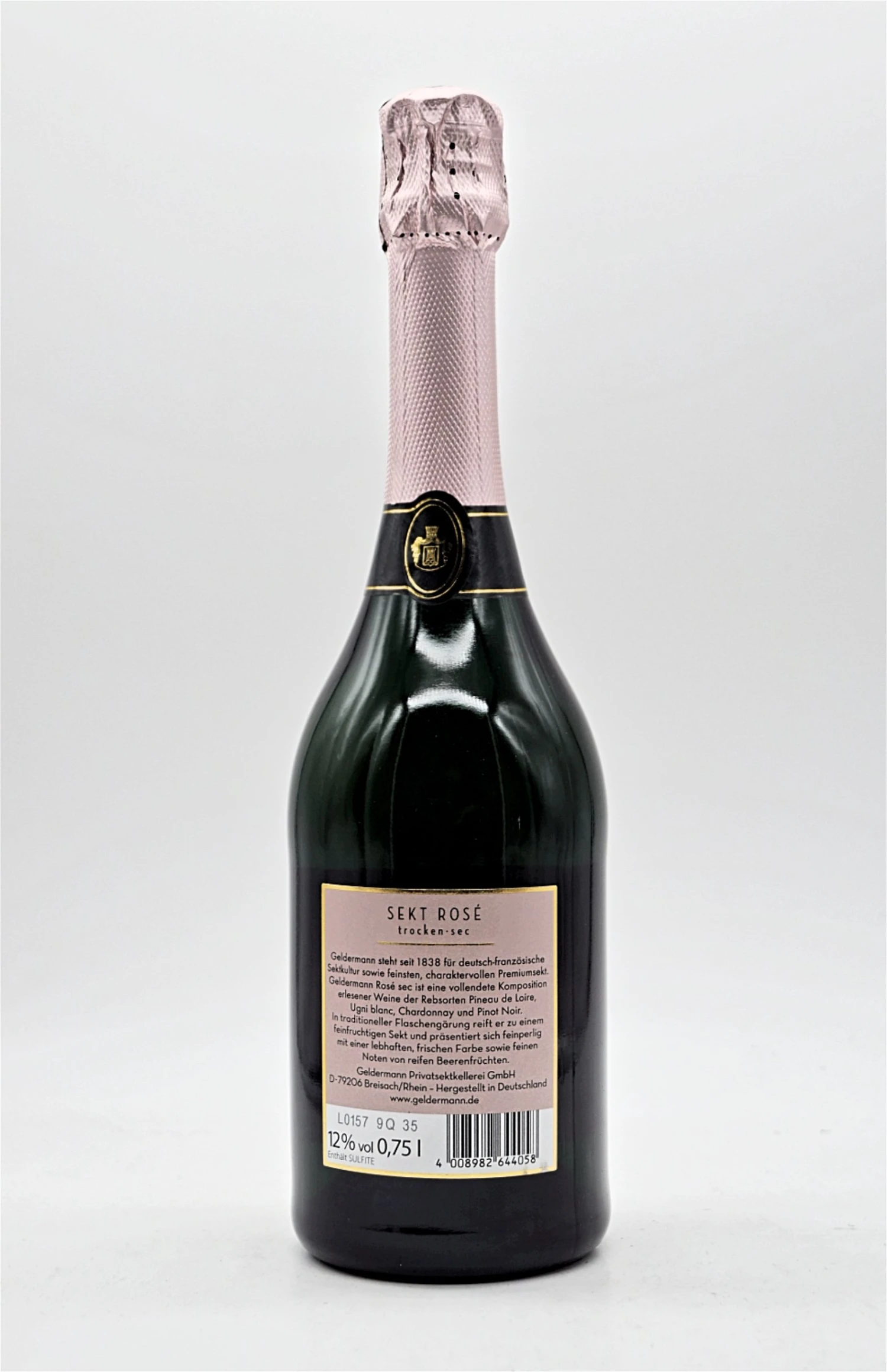 Für die Verwandlung in einen Geldermann Sekt durchlaufen die ausgewählten Grundweine die Flaschengärung nach traditioneller Art, Schritt für Schritt und mit der Sorgfalt, die für ein außergewöhnliches Geschmackserlebnis notwendig ist. Die nach Rezept erstellte Cuvée wird in einzelne Flaschen gefüllt und dann mit der Fülldosage versehen. Bei kühlen Temperaturen und gefiltertem Licht dauert es anschließend drei Monate, bis die zugesetzte Hefe den Zucker in jeder einzelnen Flasche in zusätzlichen Alkohol und Kohlensäure verwandelt hat. Tief in den kilometerlangen Kellern des Breisacher Münsterbergs und bei einer optimalen Lagertemperatur von 13 Grad Celsius reifen die Cuvées aus der „Les Grands“-Linie traditionell zwei Jahre.