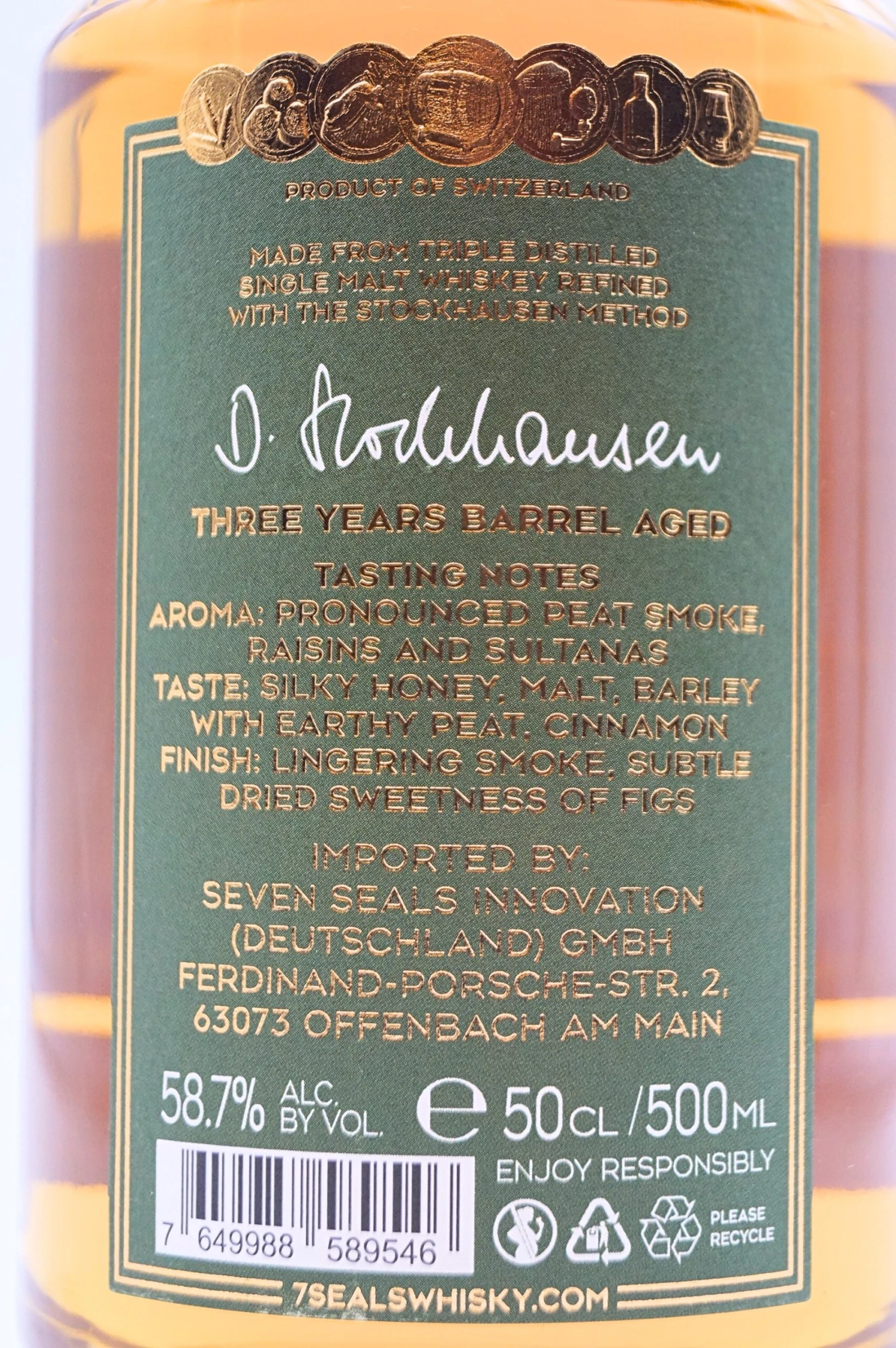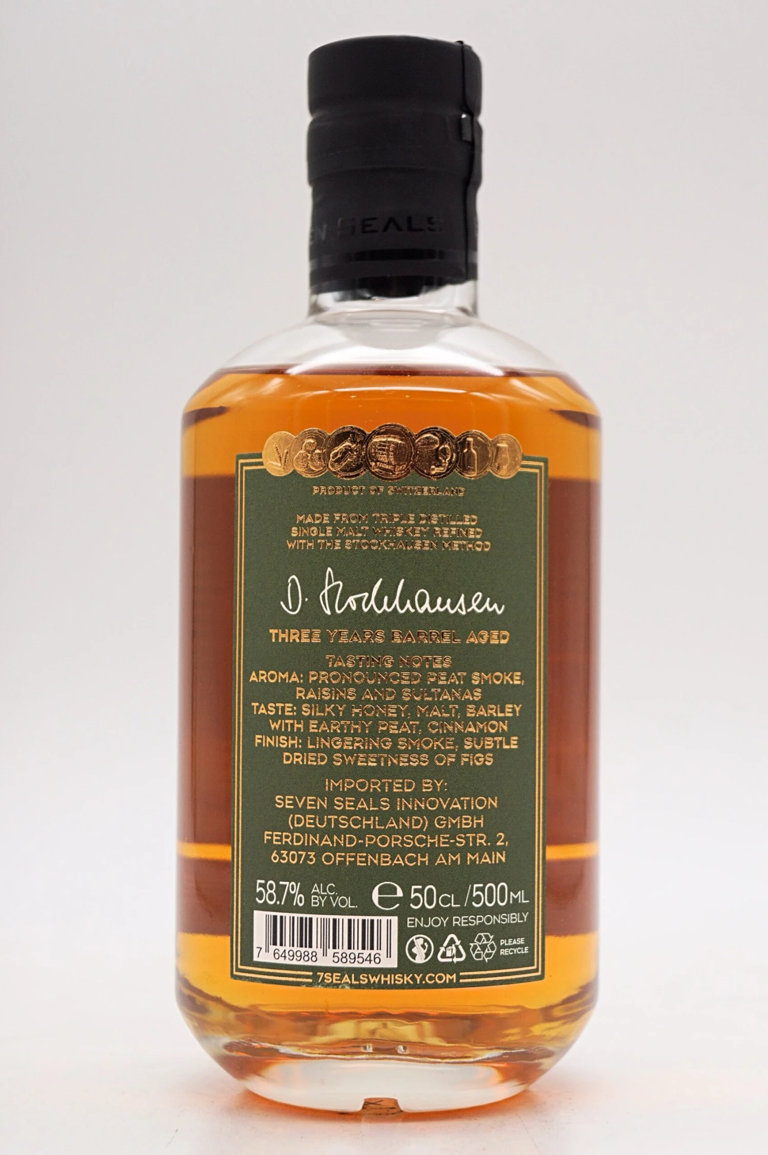 Dieser Seven Seals Double Wood Finish Peated Single Malt hat eine sehr beachtliche Torf-Rauch Note.