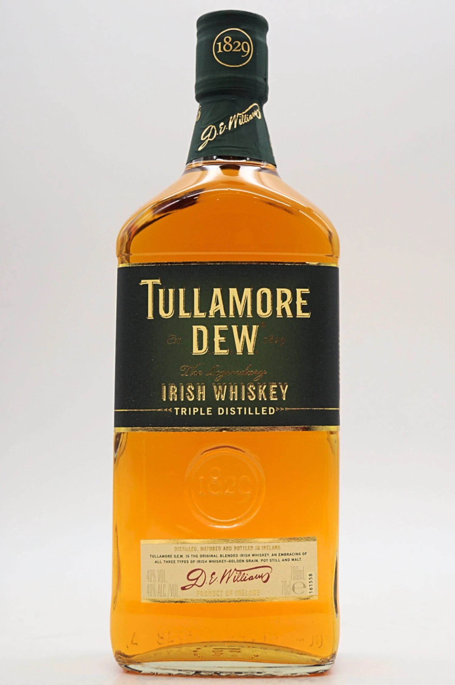 Tullamore DEW ist der originale dreifach destillierte Whisky mit Dreifachmischung. Weltbekannt für seine geschmeidige und sanfte Komplexität. Tullamore DEW ist nach Daniel E. Williams benannt, dem Mann, der entschied, dass echtes Handwerk nur vom wahren Charakter herrührt, und darauf bestand, dass sein Whisky entsprechend hergestellt wurde.