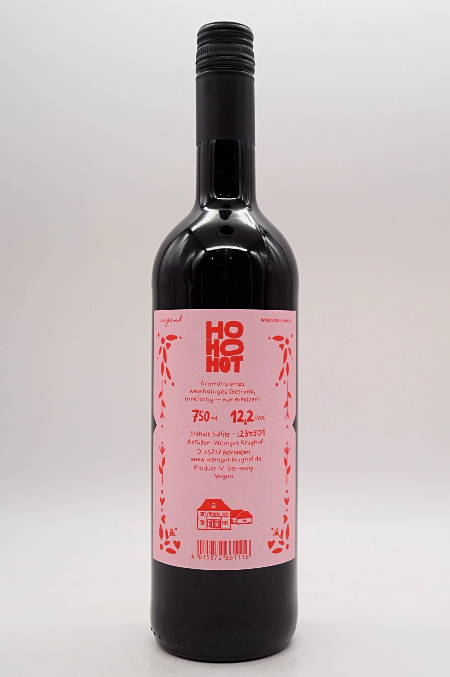 Mit dem farbenfrohen HO HO HOT Winzerglühwein vom Weingut Krughof bringen wir nicht nur Freude in diese Jahreszeit, sondern auch erstklassigen Glühweingenuss direkt zu dir nach Hause! Auf Basis erlesener Regent Rotweintrauben entsteht hier ein einzigartiger Winzerglühwein. Tiefdunkel, samtig und verfeinert mit Aromen von Orangen, Nelken und einem Hauch Zimt, hebt er sich von herkömmlichen Glühweinen ab und verspricht ein genussvolles Glüherlebnis in seiner schönsten Form